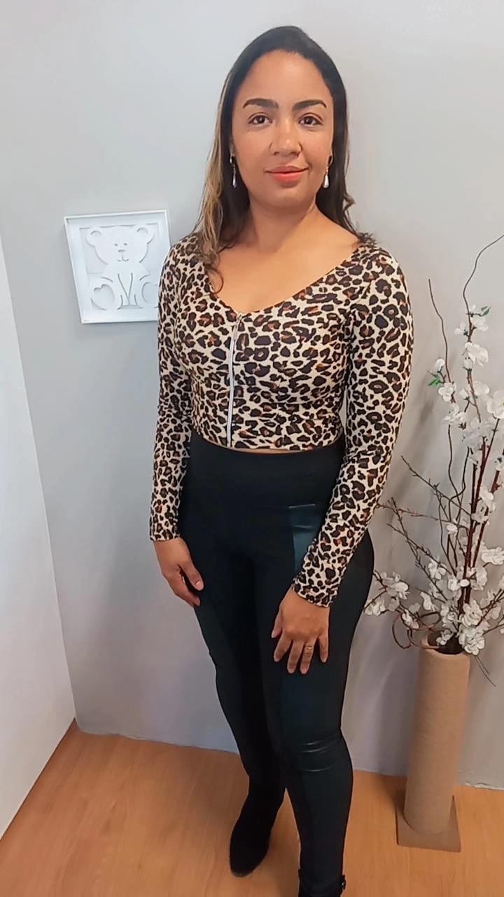 Cropped estampa de onça, uma peça linda e confortável.